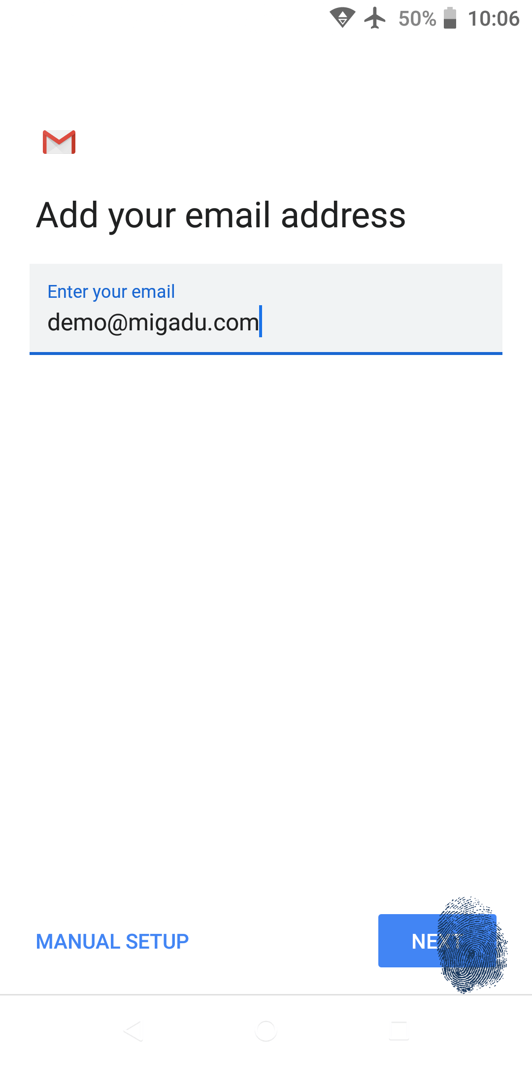 Enter your Migadu hosted mailbox address now and tap Next.